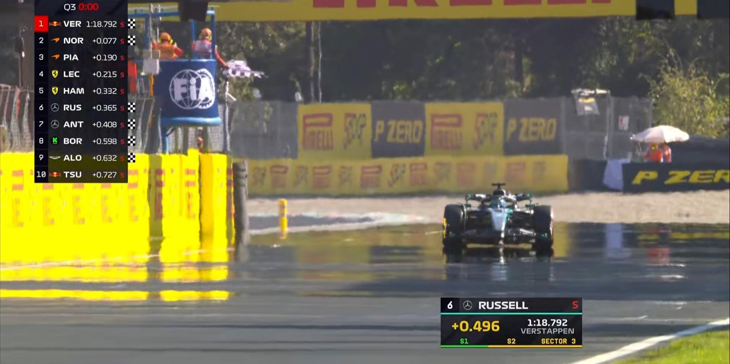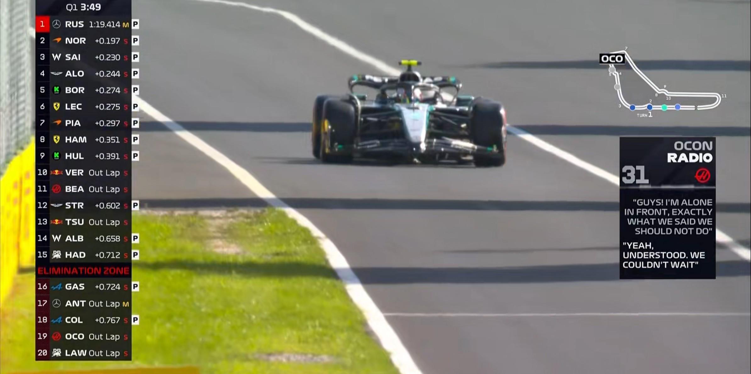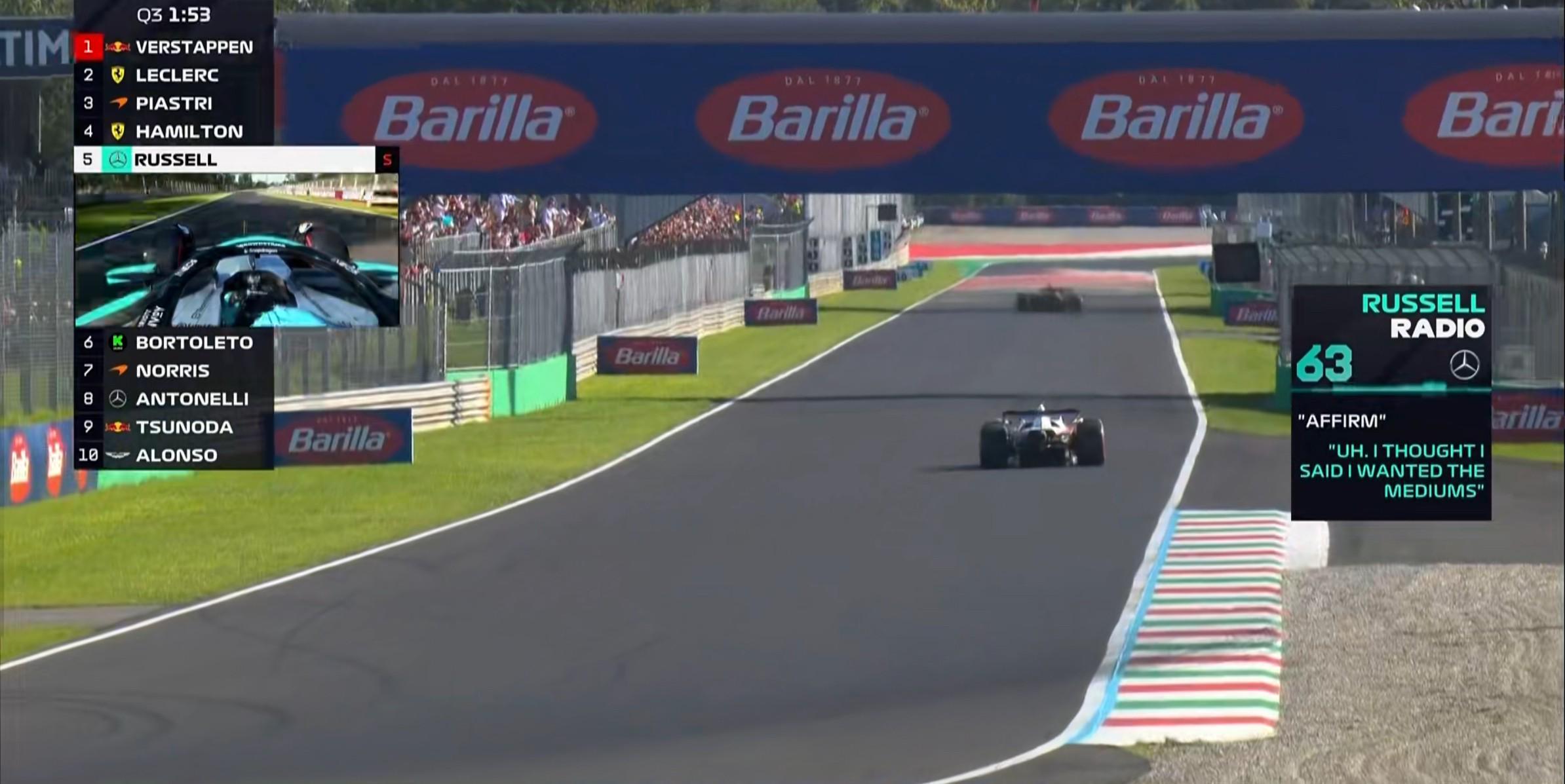 拉塞尔询问工程师赛车为什么上了软胎,但他其实想用中性胎完成飞驰;