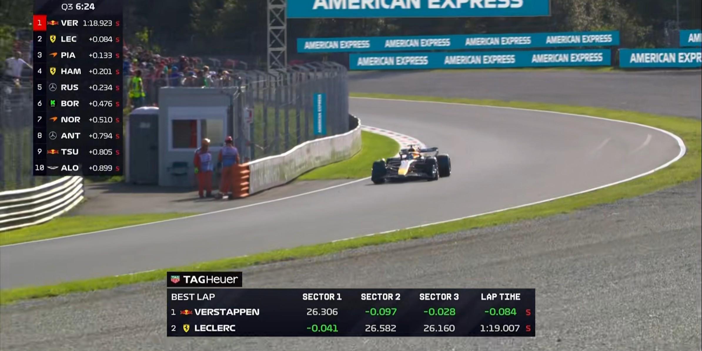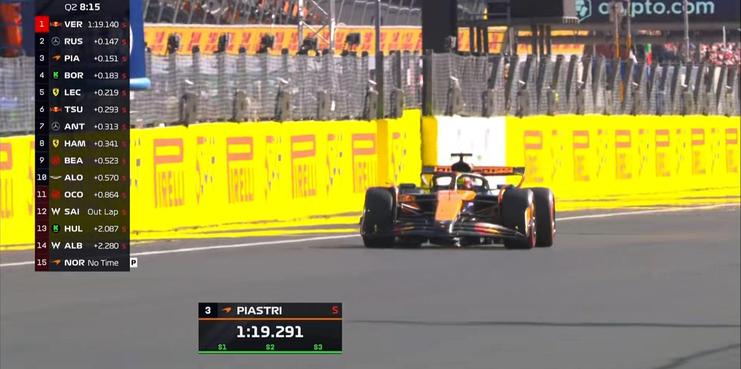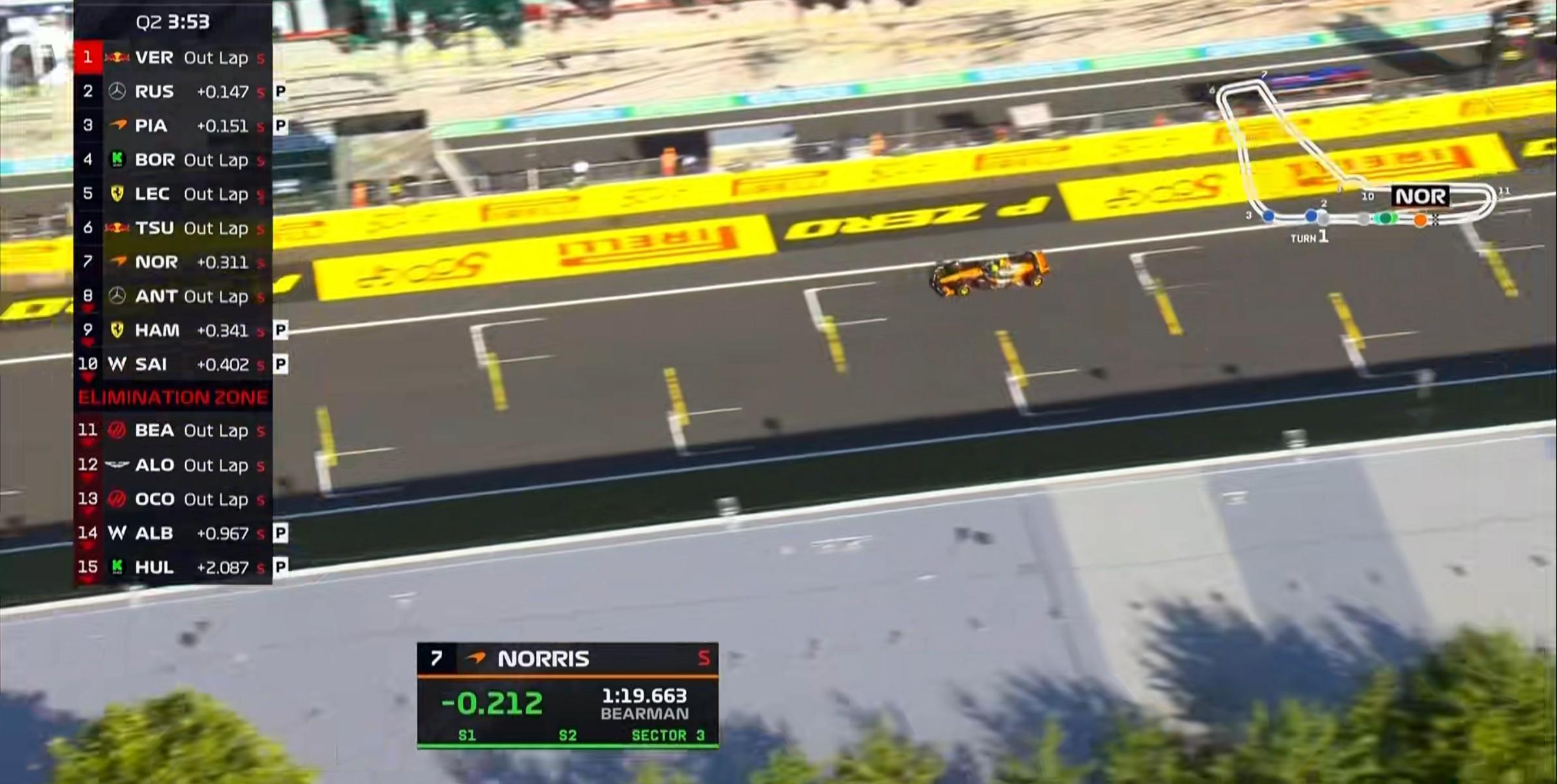 Q2首轮飞驰圈结束,维斯塔潘暂居榜首,诺里斯无有效成绩;